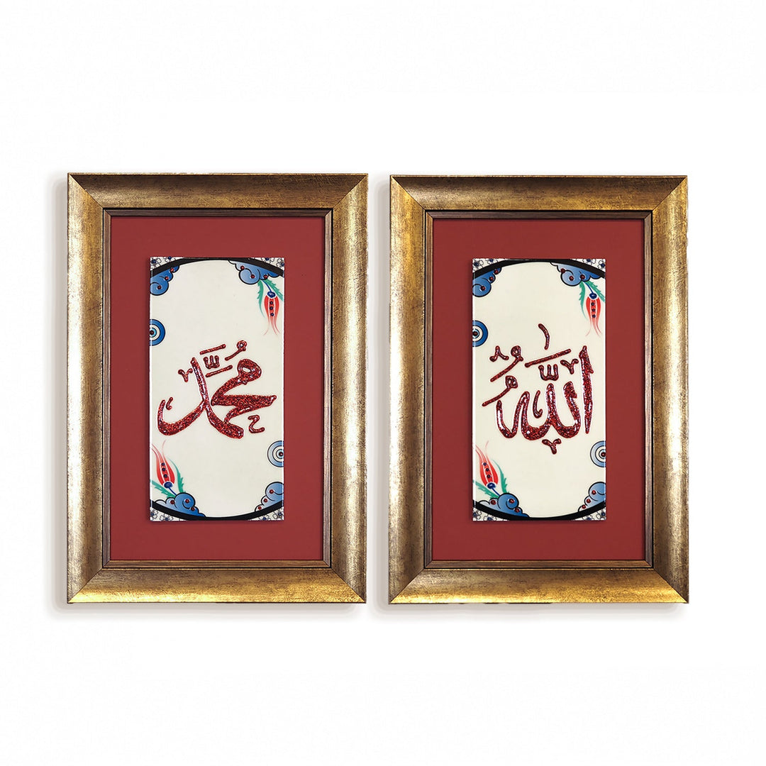 Allah & Muhammad Written Set of 2 Ceramic Tile Islamic Wall Art (Glow in Dark) - WAC039