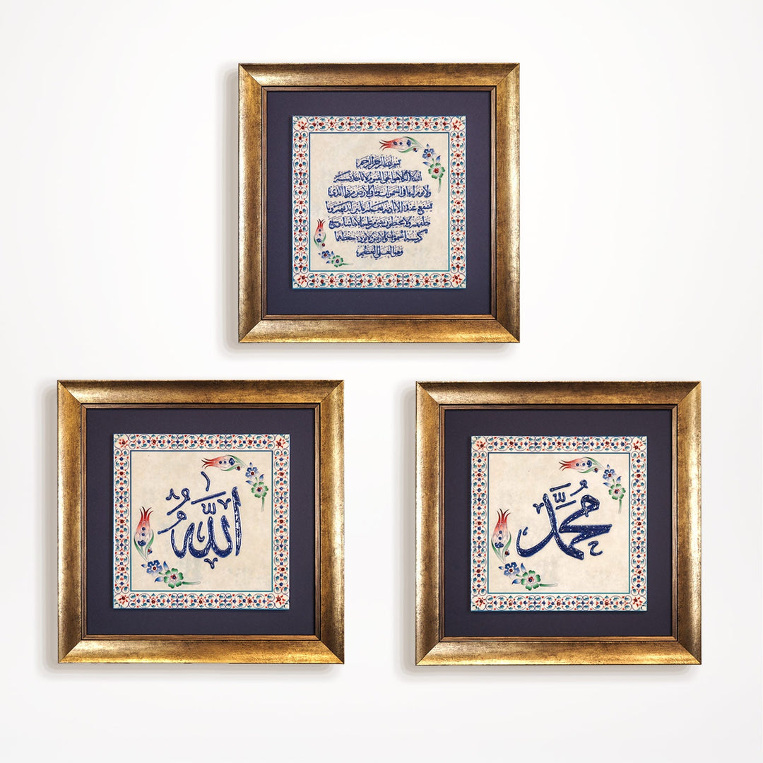 Allah, Muhammad & Ayatul Kursi Written Set of 3 Ceramic Tile Islamic Wall Art (Glow in Dark) - WAC043