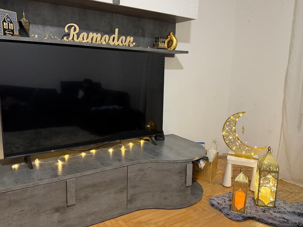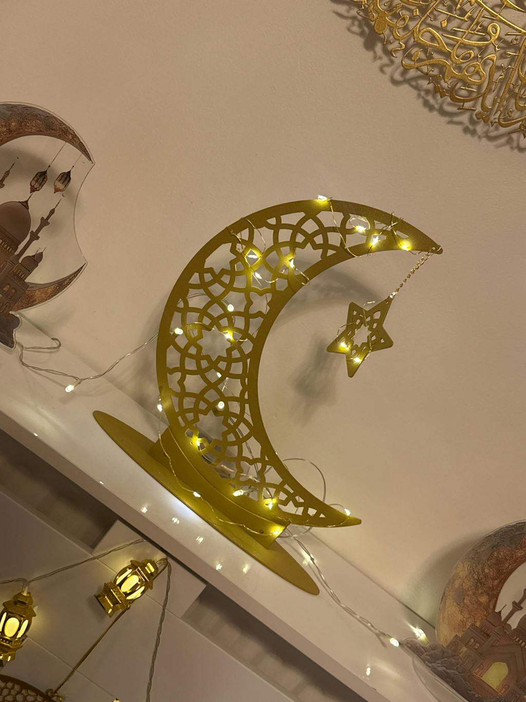 A crescent that marks the spirit of Ramadan — a symbol of reflection, renewal, and light. Let this elegant metal moon bring serenity to your nights of prayer and togetherness.