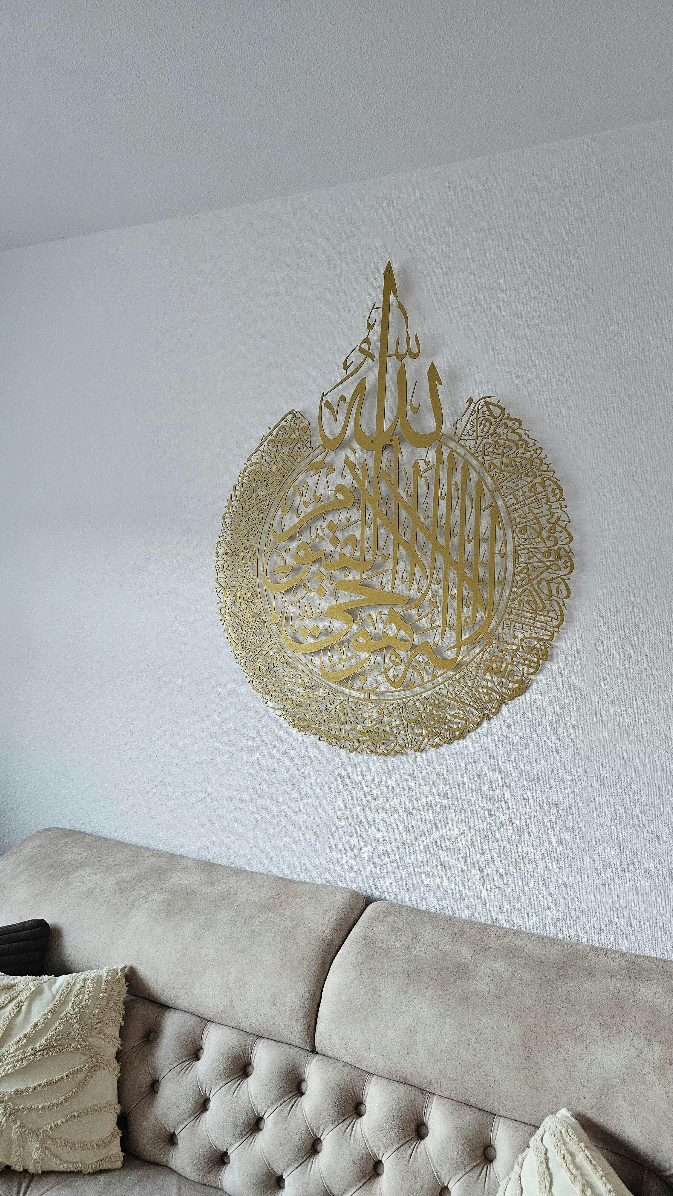 لوحة آية الكرسي عبارة عن تحفة فنية ماشاءالله تبارك الرحمن جميع أصدقائي يسألوني عنها ، أشكر جميع القائمين على مثل هذا العمل المتقن للفن الإسلامي المميز وتستحقون 5 نجوم بإمتياز