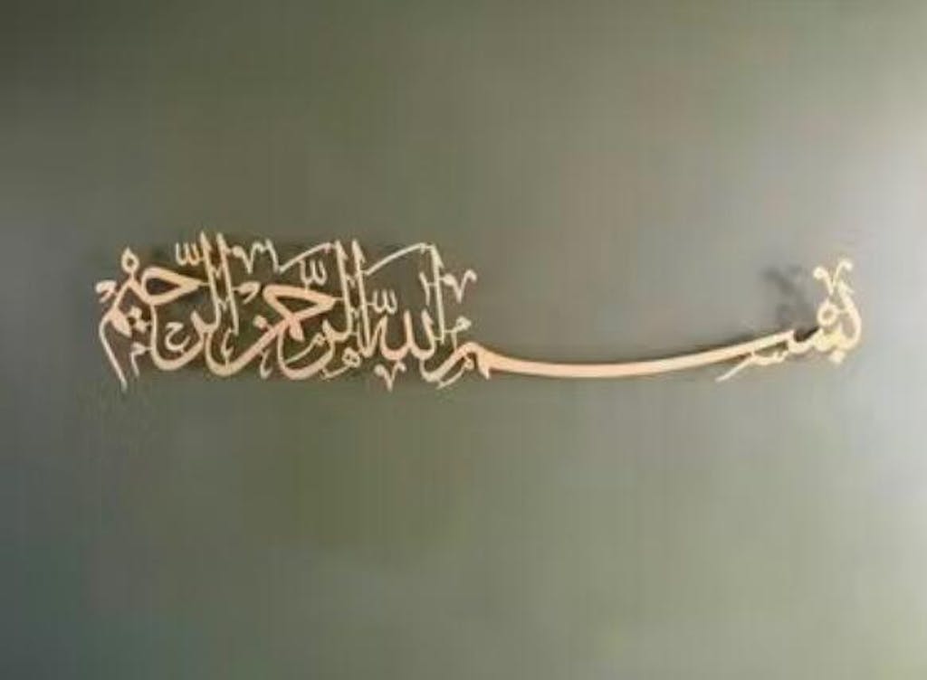 S. A beautiful and well crafted piece. Arrived so quickly, and came packaged so well. Perfect for the dining room as a reminder to say Bismillah before eating. It is exactly as described and the little gift made from the left over pieces was a really nice touch. Thank you