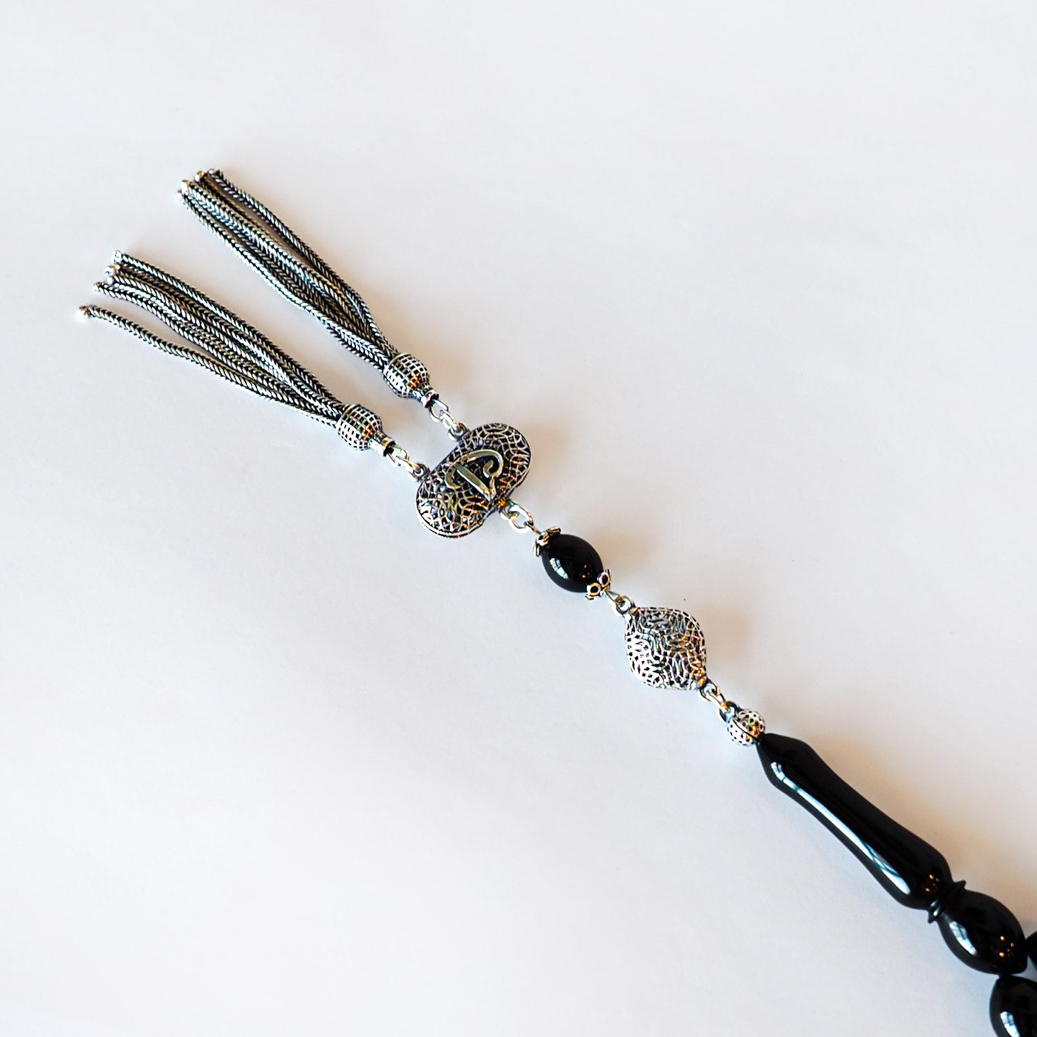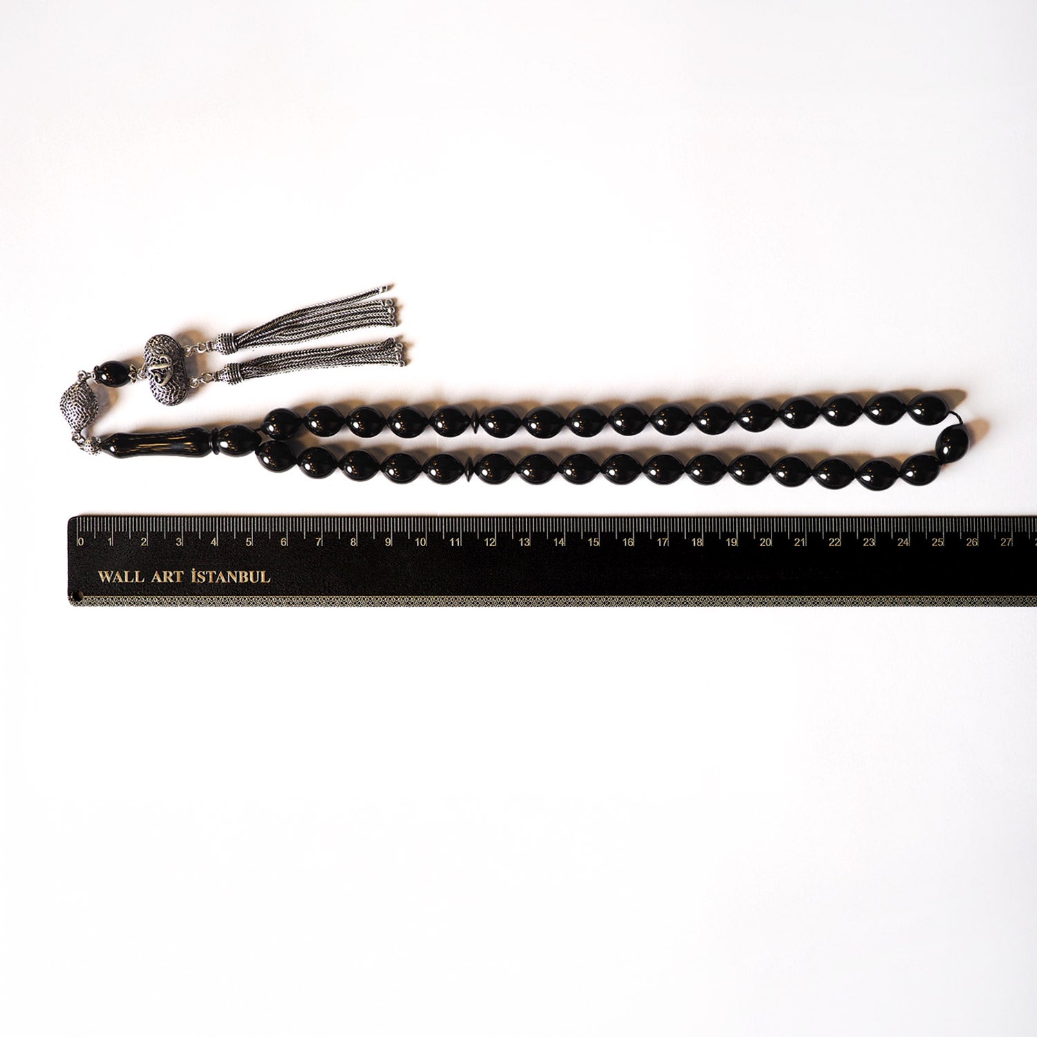 Crafted from genuine Erzurum Oltu stone and adorned with finely detailed silver accents, this limited-edition tasbeeh is a symbol of elegance and spirituality. Each bead is carefully handcrafted, offering a refined touch to your daily prayers while also standing out as a meaningful gift option.