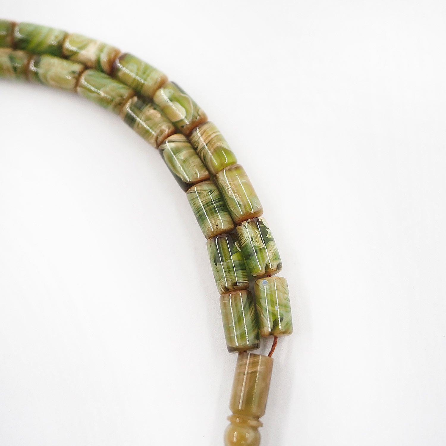 This handcrafted tasbeeh features custom cast Catalin beads with a smooth form, offering a balanced presence that combines visual depth with a comfortable, flowing grip.