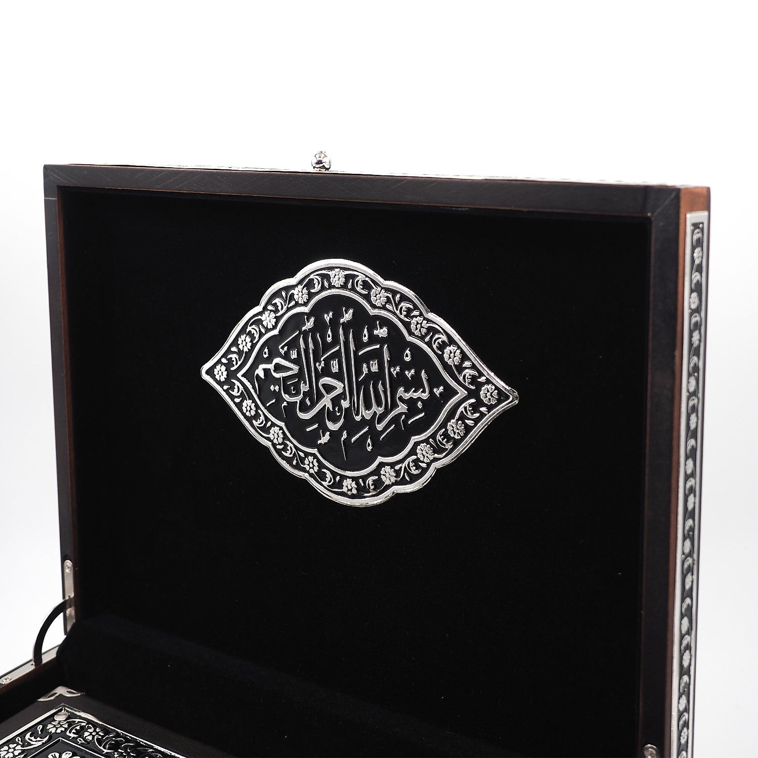• Decorative engraved detailing on both box and Quran case