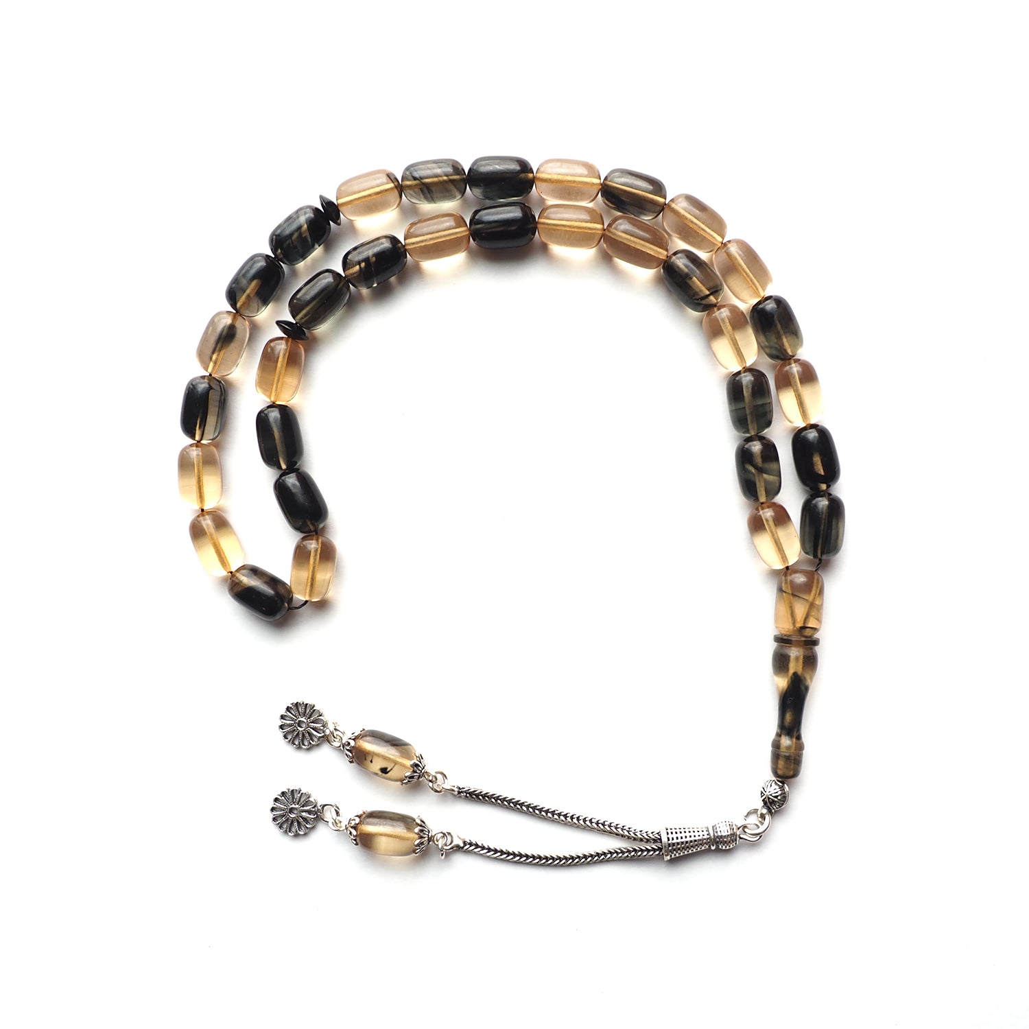 Handcrafted Pressed Fire Amber Tasbeeh Silver Tassel – WATD121